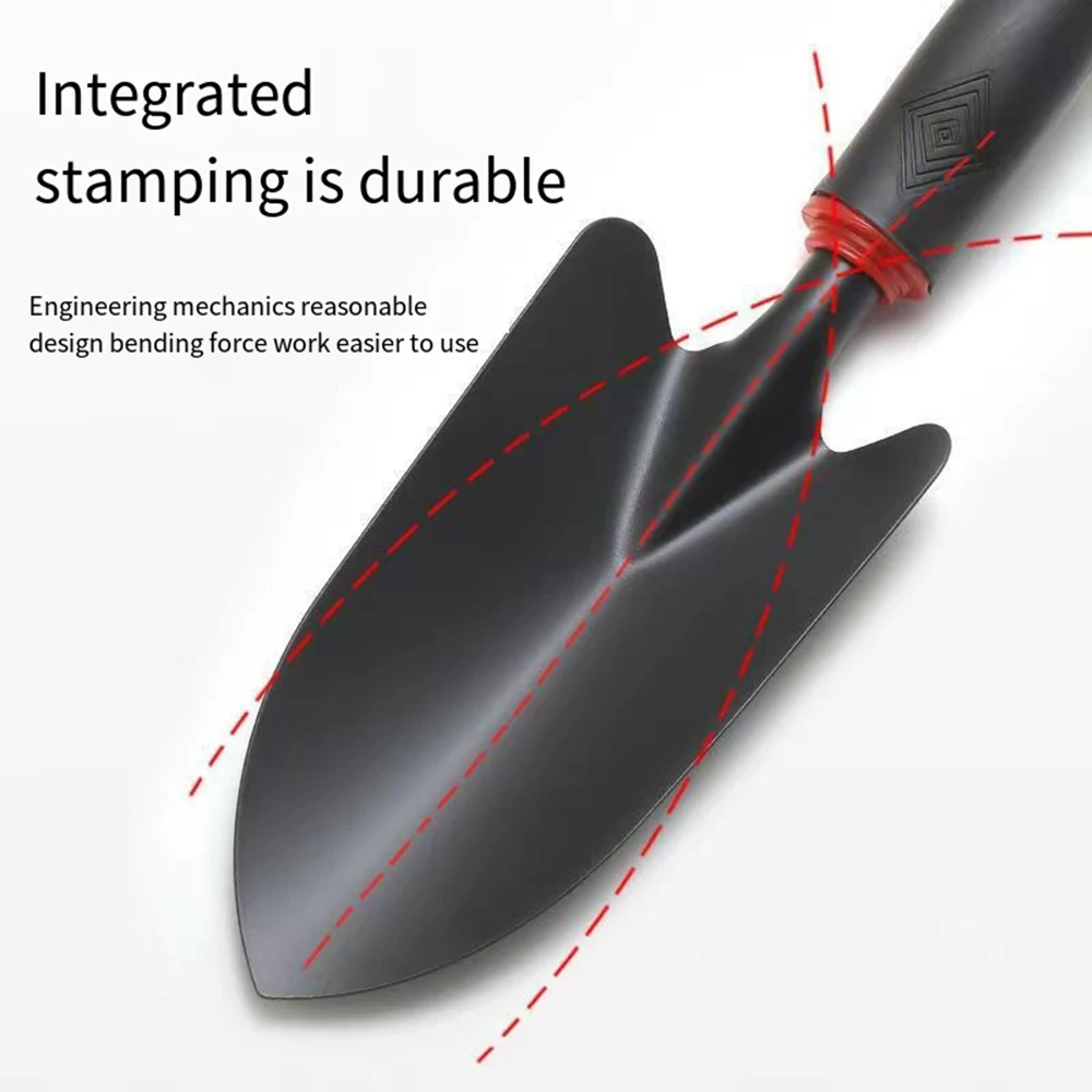 2️⃣ Pá larga – perfeita para escavar, transplantar e adubar, com formato ergonômico que facilita o manuseio.